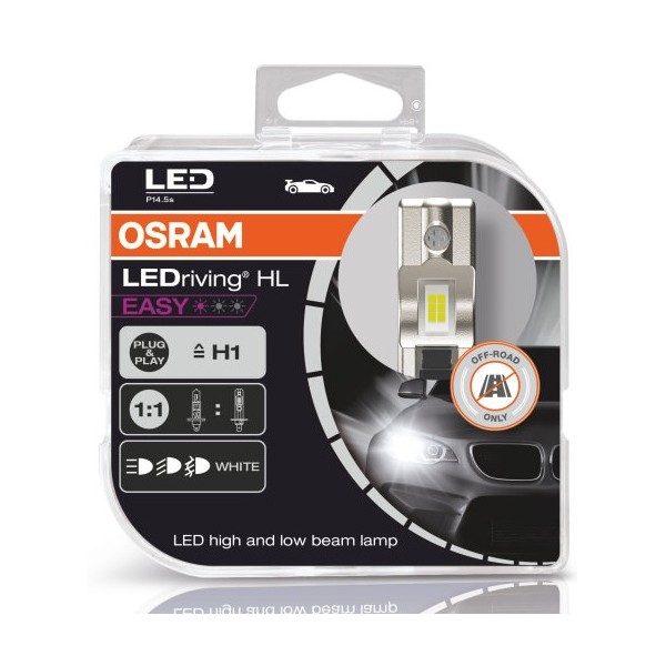 O modelo  LED Osram LEDriving HL EASY H1 64150DWESY apresenta elevada compatibilidade . As dimensões ultracompactas associadas ao formato idêntico ao da lâmpada de halogeneo permitem , de modo geral , a colocação e montagem como se de uma lâmpada de halogeneo se tratasse ( Plug & Play ) , sem necessidade de adaptadores ou tampas . Apresentam expectativa de duração de 1.000 Horas e cor idêntica à luz do dia ( 6.500K ) .